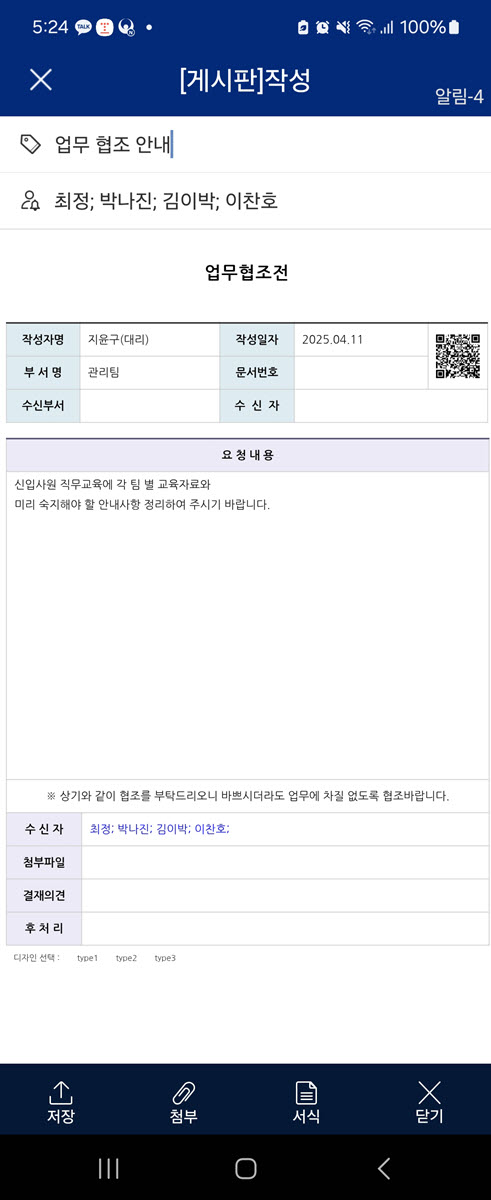 첨부한 파일이 여러 개인 경우 스크롤하여 파일 목록을 확인할 수 있으며